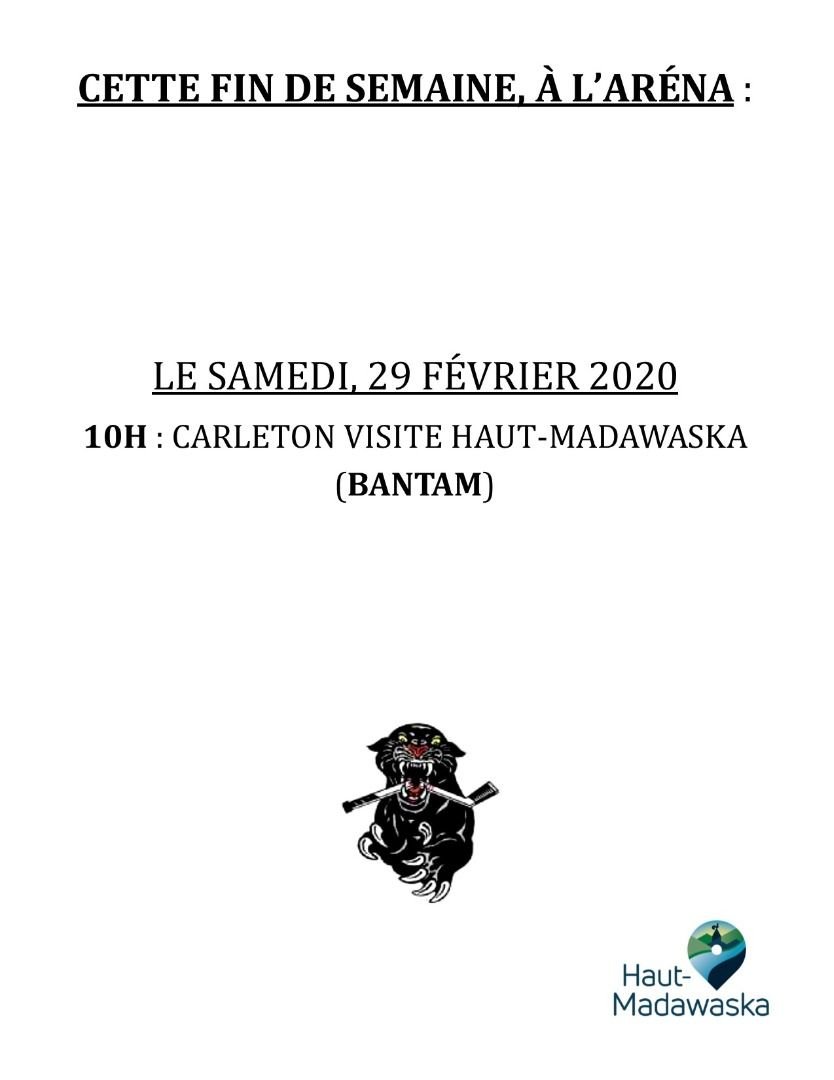 Voici l'horaire des activités à l'Aréna J. Docithe-Nadeau, Quartier Saint-François pour cette fin de semaine.